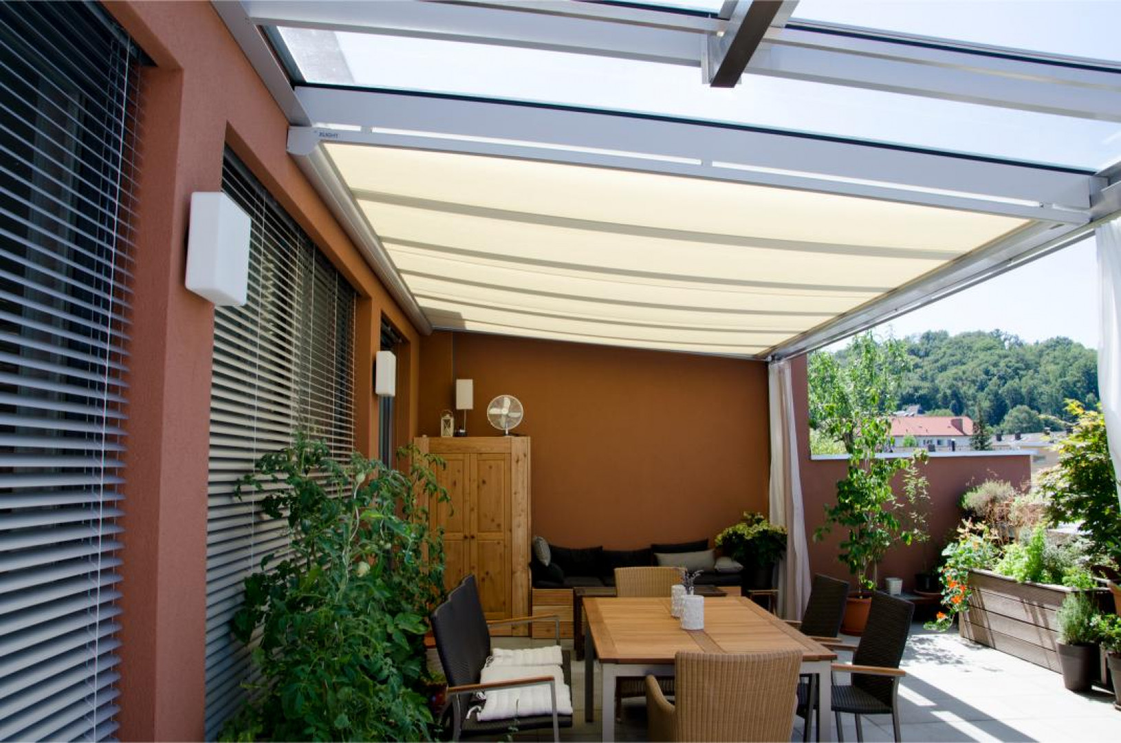 A kihúzható napellenző minden szeszélyhez alkalmazkodik. Az Ön szeszélyeihez és az időjárás szeszélyeihez is. Ha elvonul a nap, egyszerűen behúzhatja a napellenzőt, és több fényt engedhet be a teraszra. A kihúzható terasz praktikus és szilárd rajongói bázissal rendelkezik. Ideális azok számára, akik szeretnék ellenőrizni a teraszon töltött napsütéses órák számát.
